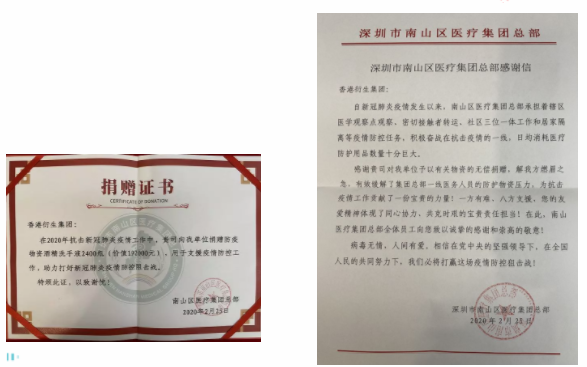 捐贈(zèng)儀式上,南山區(qū)醫(yī)療集團(tuán)總部副總院長(zhǎng)張飛先生表示:感謝香港衍生集團(tuán)為一線醫(yī)護(hù)工作者捐贈(zèng)物資,這是香港衍生集團(tuán)大愛的彰顯,這不僅溫暖了醫(yī)護(hù)人員的心,更激勵(lì)了我們抗擊疫情的斗志!