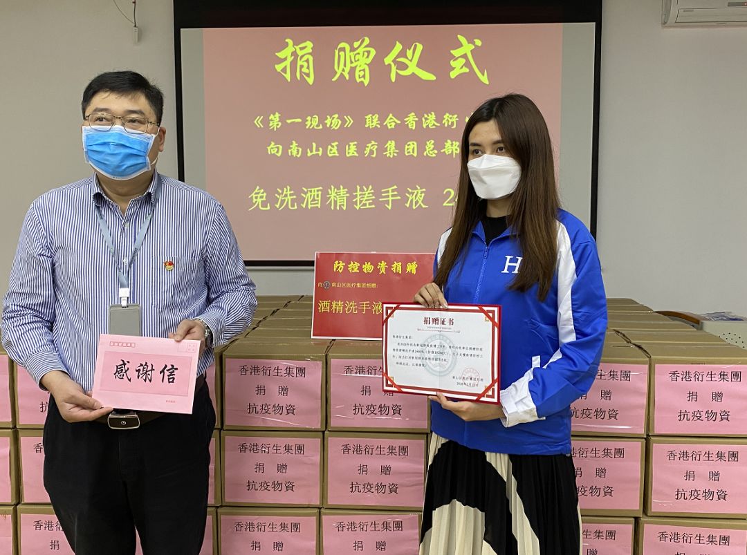 2月26日,香港衍生集團(tuán)聯(lián)合深圳都市頻道《第一現(xiàn)場(chǎng)》欄目開展了《深愛天使 現(xiàn)場(chǎng)行動(dòng)》抗疫捐贈(zèng)活動(dòng),向深圳市南山區(qū)醫(yī)療集團(tuán)總部的82家公立社康醫(yī)院,捐贈(zèng)價(jià)值19.2萬元的2400瓶「私+呵護(hù)」免洗酒精搓手液(600ml),藉此慰問抗擊疫情的一線醫(yī)護(hù)工作人員!